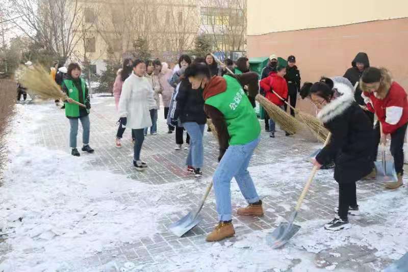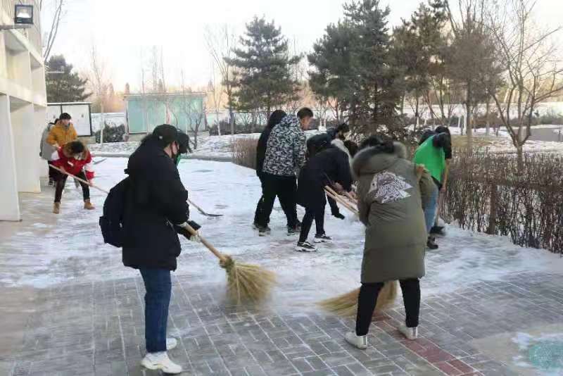 为方便师生出行,消除安全隐患,公司分别于11月15日、11月29日、12月5日和12月9日组织19级八个班级于员工公寓附近开展扫雪除冰义务劳动,公司230余名员工积极参加。