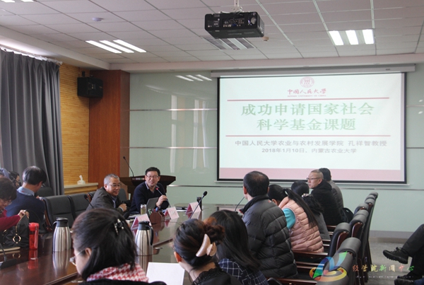 第二讲孔祥智教授针对“成功申请国家社会科学基金”这一主题,分别从科学研究、如何选题、选题依据、研究对象、思路方法、预期成果、研究基础与保障、国家重大社科项目的申请等八个方面,分享了自己的经验与心得体会。他还分析了在十九大中有关对申报国家社科基金项目的内容,即“坚持基础研究和应用研究并重,发挥国家社科基金示范引导作用,加快构建中国特色哲学社会科学,为党和国家工作大局服务,为繁荣发展哲学社会科学服务。”最后,孔祥智教授详细地讲解了有关学术论文的评审要求以及如何申报项目,使在场师生受益良多,感触颇深。