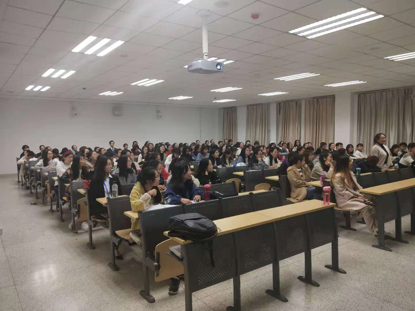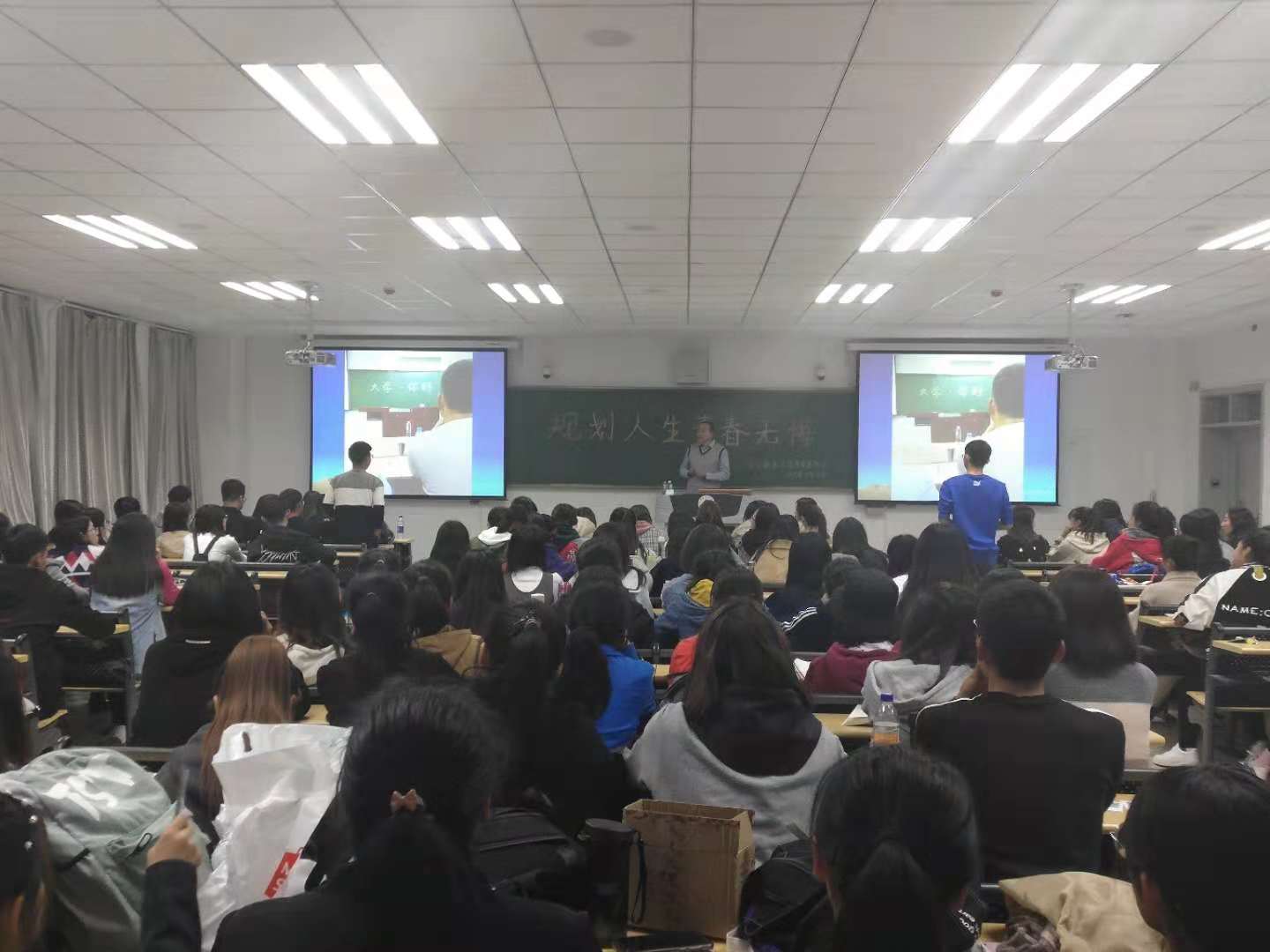讲座上,杨毅老师以各大公司的招聘条件、招聘数据、招聘流程为例,让同学们认清当代老员工的就业压力,在如何应对这些压力上,杨老师建议同学们通过考证、考研等方式提高自身的含金量。在介绍报考公务员以及考研的各项流程中,杨毅老师告诉同学们要时刻关注时事热点并向大家推荐一些新闻周刊,他希望同学们能够提早做出属于自己的未来职业生涯规划。随后,杨毅老师强调了学历的重要性,并引用身边真实案例讲解了大学期间补考,挂科的严重后果。最后,他用公司图书馆占座视频与一些老员工消极厌学的图片作对比,让同学们看到“农大骄傲”的同时,也认识到大学期间认真学习的重要性。讲座过程中,杨毅老师用风趣幽默的语言与同学们积极互动,大家纷纷畅所欲言,表达了自己的理想以及对未来的规划。