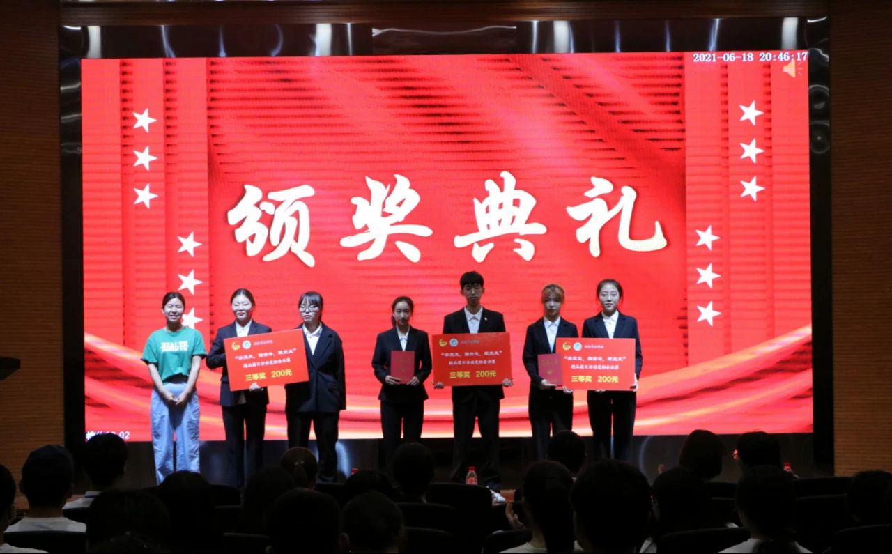 班主任代表贾姝静老师对比赛做出点评,她表示,此次比赛旨在增强青年员工的爱国主义情感,培养青年员工的责任使命感,加强共青团的凝聚力、向心力,希望各团支部重视团日活动的举办,努力创建爱国爱党、积极向上、团结奋斗的团支部,砥砺共青团员的使命与担当,推动党史学习教育的走深走实。经过评比,20级经济二班团支部荣获此次比赛一等奖;20级物流一班、20级工商二班获得二等奖;20级农经一班、20级金融一班、20级农经二班获得三等奖;20级会计二班、20级农经四班、20级经济一班、20级财管二班获得优秀奖,高博老师、李洁老师、陈玉双老师、云泽晖老师分别为获奖队伍颁奖并合影留念。