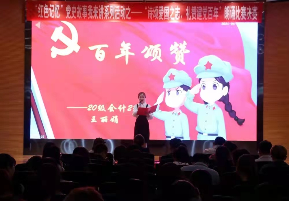 4月21日晚7:00,公司于经管123报告厅举办“诗颂爱国之志,礼赞建党百年”朗诵比赛决赛。学办副主任苏宁巴乐、辅导员白灵、云泽晖、陈玉双出席本次活动并担任大赛评委,公司190余员工积极参加。
