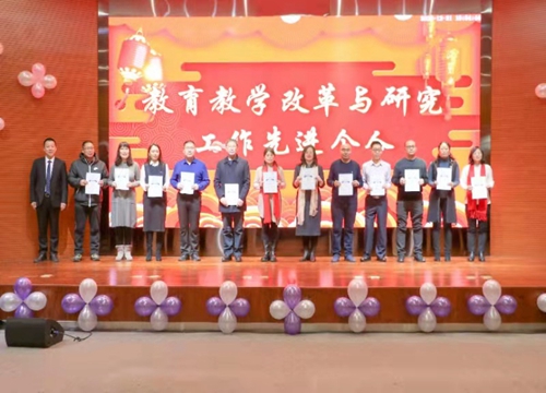 在颁奖环节中,公司围绕教学工作、科学研究、管理服务、优秀团队等几个方面共16个奖项表彰了一年来在各项工作中表现突出的个人和集体。联欢会中还穿插了互动游戏和网络节目评审环节,增添现场的娱乐气氛。整场联欢会在教职工的“全家福”中圆满落幕。
