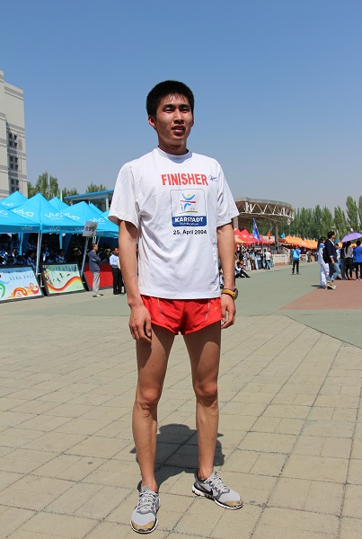 谈到今天能发挥这么出色的原因时,他谦虚地说:“其实,跑一万米最重要的就是掌握好节奏,掌握好自己的脚步,并且要对自己的身体优势要充分的了解。同时,跑的时候,脚步要有力,速度要平缓,不要太快也不能太慢!八公里的时候是最累最需要毅力的!用一句话来形容就是:靠的是毅力,贵在是坚持。”