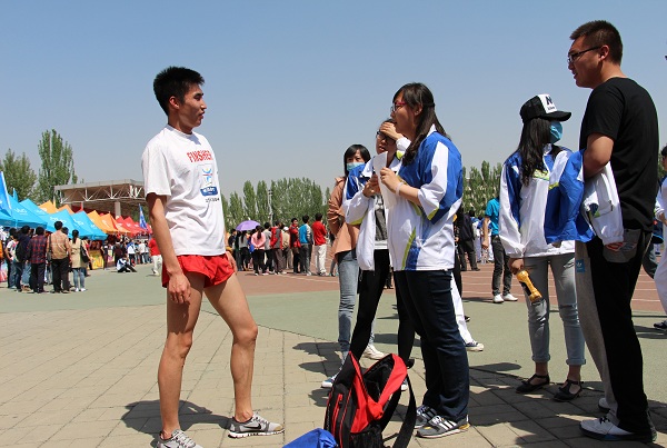 在接受记者采访时,马强脸上的一直挂着灿烂喜悦的笑容,万米的路程可想而知是多么的艰难,这意味着要绕400米的跑道25圈。没有坚强的体魄与意志,是不可能坚持下来的。在马强稳健的步伐下,在同学们响彻云霄的呐喊声中,马强第一个冲过终点。