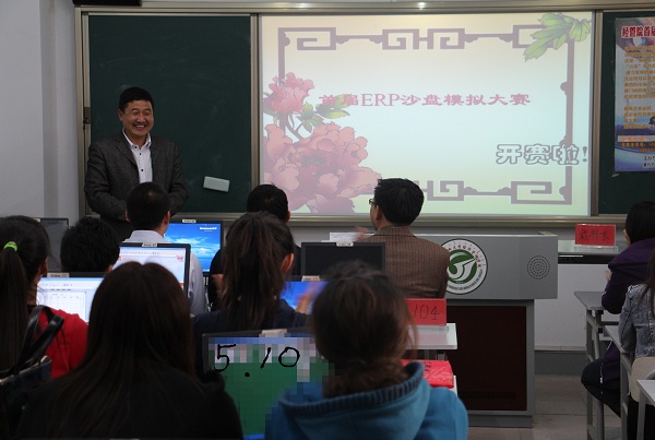 随后,乔光华经理发表了讲话。他说这是一项有意义的工作,可以让竞赛者在游戏般的比赛中体验完整的企业经营过程,感悟正确的经营思路和管理理念。然后乔经理对老师们的努力和同学们的积极参与表示十分的感谢。并且承诺,新的实验室建设正在进行,公司会对实验室条件进行最大程度的改善,并以此为开始 ,进行长期持续的发展。同时,公司经过对全国各地的公司进行考察后决定对获奖的同学给予更多的奖励以示鼓励。并预祝参加比赛的同学们在接下来的比赛中取得好成绩 。最后,副经理宝音都仍宣布了首届ERP沙盘模拟大赛正式开始。