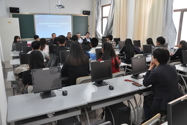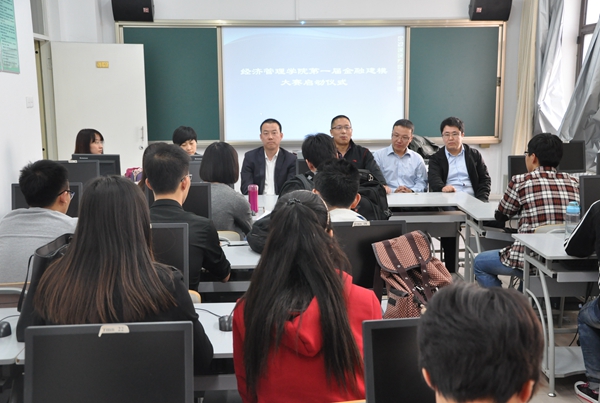 4月11日晚6:00,经管院第一届金融建模大赛启动仪式在经管院五楼金融系实验室拉开帷幕。到场的领导有党委副书记王智广,金融贸易系主任孟凡杰,金融系指导老师白静、周杰、郭晓春、张博。