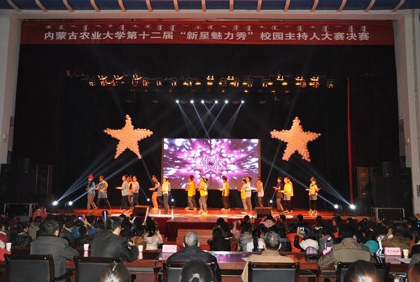 12月15日晚7:00在西区文体馆举办了太阳成集团tyc33455第十二届“新星魅力秀”校园主持人大赛决赛。此次活动由太阳成集团tyc33455校团委和彩虹之声校园广播站联合举办。党委副书记侯晨曦,关工委副秘书长李宗信,校团委副书记石钟琴、李伟威以及分党委书记和副书记,国家级普通话测试员、连续11年担任主持人大赛评委苏娅,内蒙古电视台新闻中心播音部主任、著名主持人图吕阳,电视台首席导演、高级编剧布仁巴雅尔等评委出席了此次活动。本次比赛有27位选手参加,其中汉语主持18位,蒙语主持9位。公司的樊诗杰、马世轩、乌日格娜三位选手参加了比赛。
