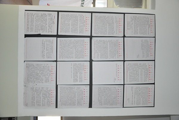 参赛的老师,同学都非常用心,优秀的文稿也不断涌现。围绕“感恩、励志、责任”这个永久的话题,老师们也积极参与其中,阐述了自己的不同看法。同学们也用年轻人的视角,对“感恩、励志、责任”有了新的定义。 本次大赛本着公平公正的原则,所有上交稿件都由老师和员工干部统一进行审核评 分,选出优秀征文进行展览。