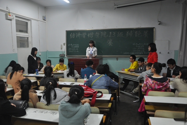 本次辩论赛以班级为单位报名,每班4名参赛选手,各班辩手围绕给定辩题以辩论赛的形式进行比赛,比赛过程中同学们进行了激烈的辩论,每只队伍都气势逼人,力求在气势上压倒对方。双方面对对方辩友的猛烈攻击镇定自若,凭借快速的反应和有力的言辞化险为夷。正反双方口若悬河、唇枪舌剑,时而慷慨激昂,时而咄咄逼人。辩手们的妙语连珠、能言善辩令人惊叹叫绝。现场的氛围也随着自由辩论顿时达到高潮。比赛结束后,评委们在每班中选出优秀辩手,根据辩手们的团队意识、辩论表述、临场表现和个人素质进行打分,分数高的一方获胜。