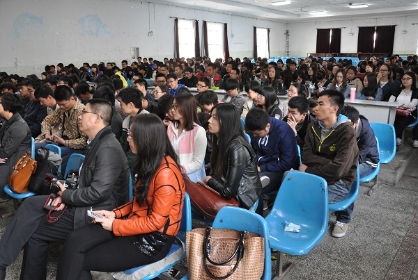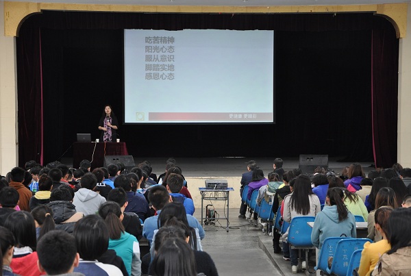 3月31日上午东区礼堂,世界500强的正大集团人力资源总监杨萍走进农大校园,针对在校老员工就老员工如何成为企业所用的人才等问题进行讲解。