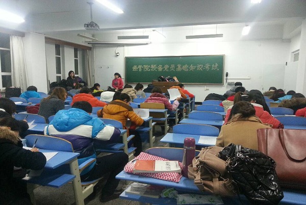 “经管院预备党员基础知识考试”在逸夫楼开考。12月12日晚7:00,“经管院预备党员基础知识考试”在逸夫楼403、502教室准时进行。此次考试对103名即将转正的预备党员进行了转正前的基础知识考察。孟昭武老师、徐金鹏老师参加了本次考试的监考工作,整个考试秩序井然。