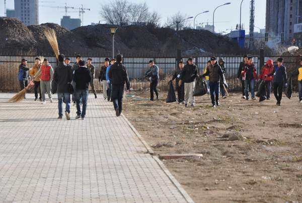 11月10日上午9:00,公司在新区开展校园卫生清洁的义务劳动。经管院员工工作办公室乌吉斯古楞老师带领由员工干部、入党积极分子以及青年志愿者九十余人组成的清扫团队参加本次活动。