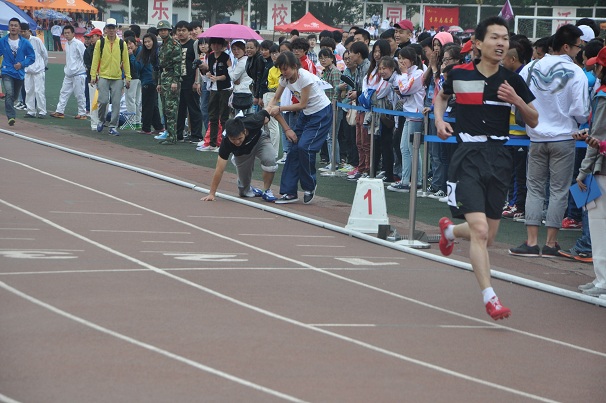 5月16日上午10:30,男子组400米预赛在西区操场开赛。翟桂龙、李明峰、全昊3名同学代表经管院出战。