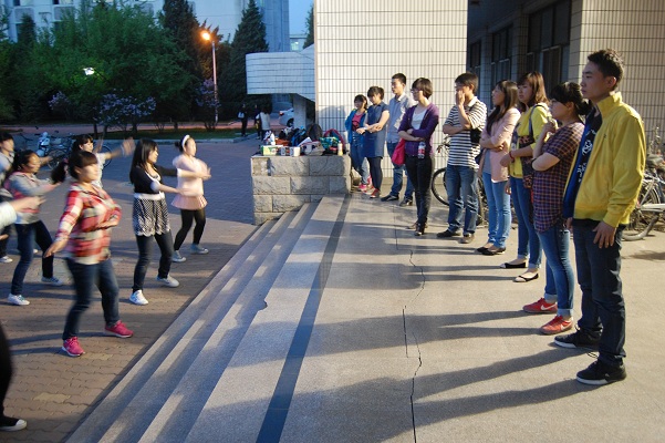 5月3日19:30,经管院于办公楼楼下进行了公司心理文化月开幕式的舞蹈排练。公司老员工心理辅导与服务中心吴丹老师、公司员工工作办公室杜清清老师、余汉龙老师莅临排练现场并对同学们进行了指导与慰问。