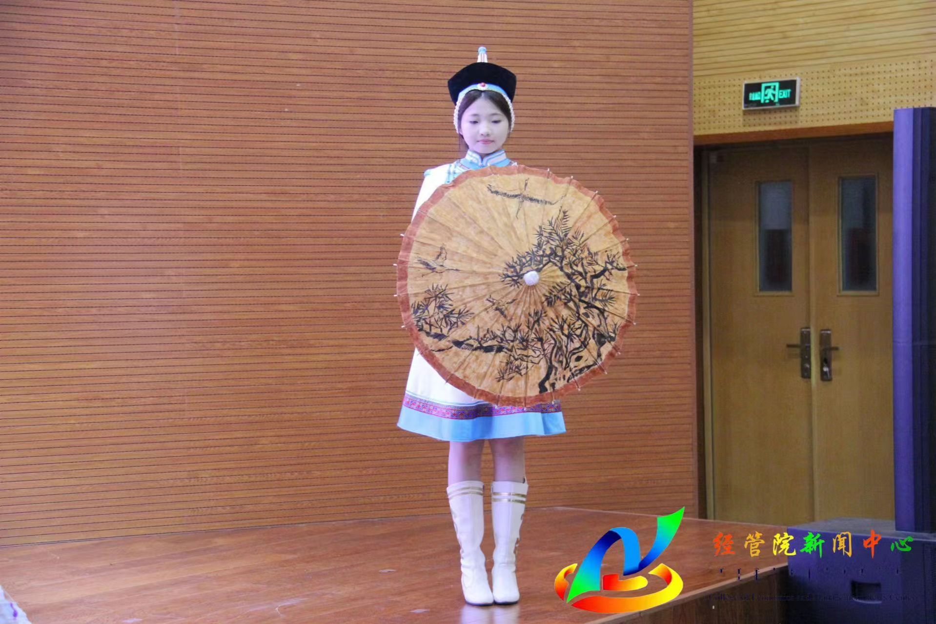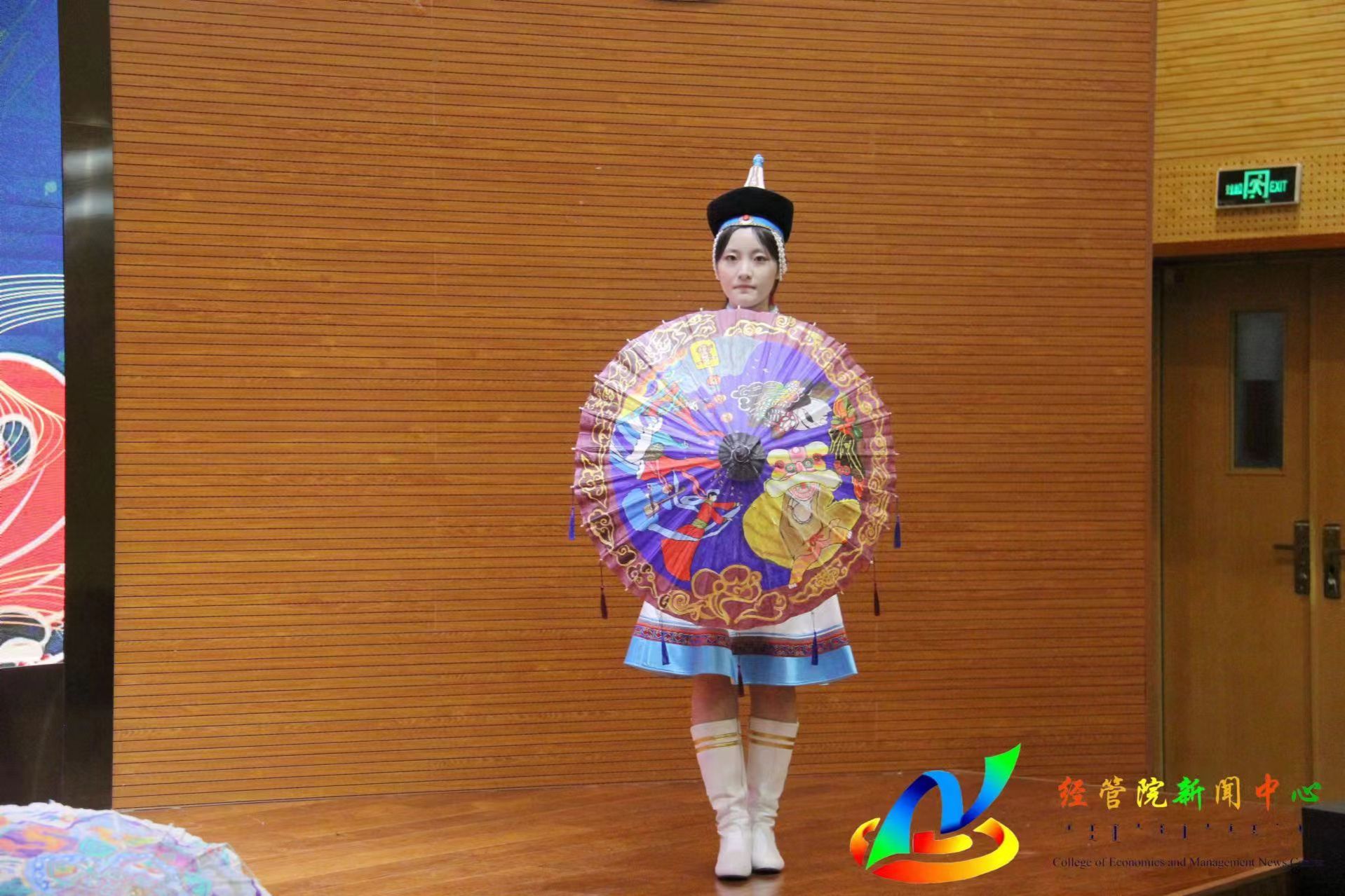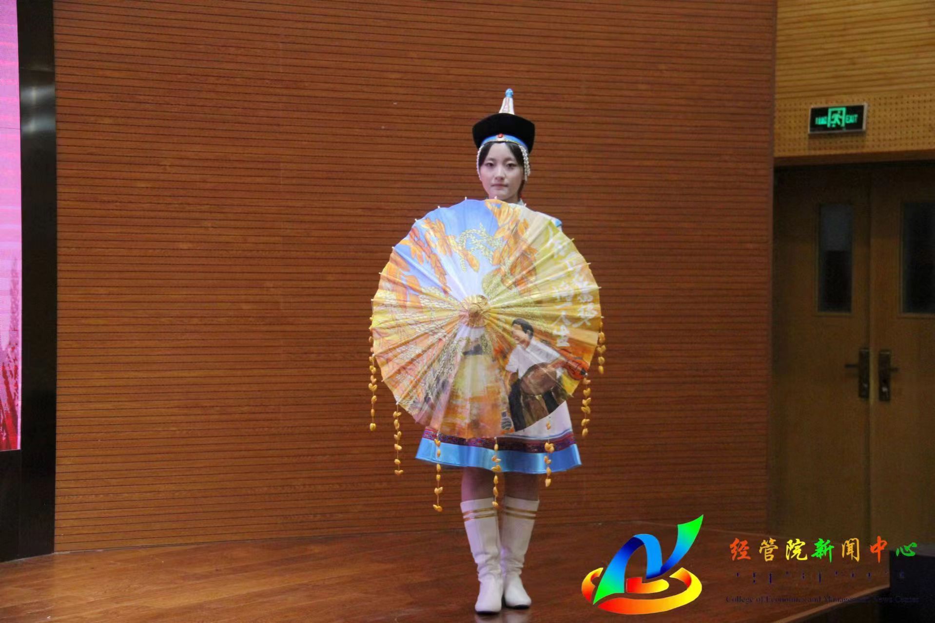 比赛中,15组参赛选手以积极饱满的精神状态讲述了油纸伞设计灵感、绘画过程以及小组合作中所遇到的困难。各组参赛作品紧密结合当前时代背景,融入了学习二十大精神、铸牢中华民族共同体意识、青年力量、航空航天、家国情怀等主题,充分体现了参赛者对璀璨中华文化的传承和发扬,在创新中感受其魅力所在。斯日古楞老师结合油纸伞的传统意义进行了总结点评,希望同学们能够感受历史的深度,体验传统的魅力,肩挑重任,坚定文化传承的初心,搭建起新时代青年与祖国民族的桥梁。
