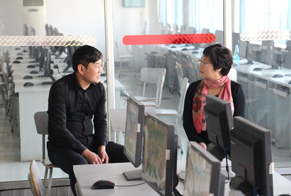 14级年级主任苏宁巴乐与心理辅导老师交谈 实习记者 贾鹏 摄