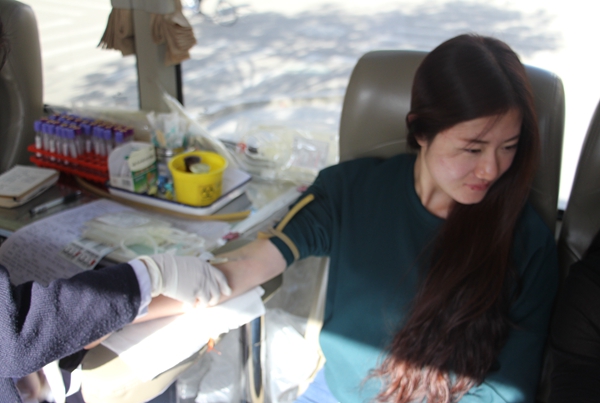 在内蒙古血液中心医务人员的指挥下,公司社团部的员工干部迅速分工并投入工作。一部分同学留在献血屋旁协助来献血的人填写表格,一部分到周边进行义务宣传。工作人员向供血者询问健康状况,指导来者注册填表,并耐心地向大家讲解献血的注意事项和献血的益处。“在献出一滴血的同时,一个生命就回出现奇迹 ”某同学献血后说到。