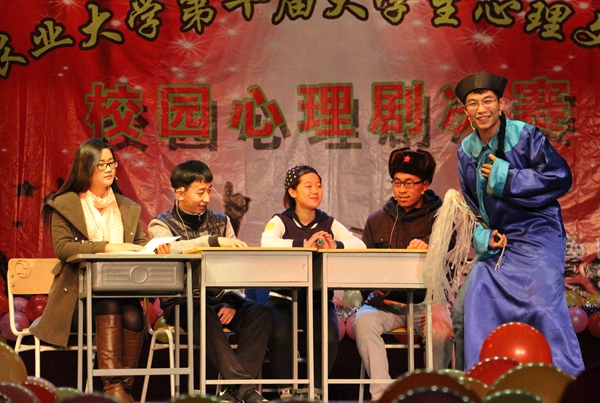 在主持人礼貌得体的声音中,大赛正式拉开了帷幕,参与本次心理剧决赛的心理剧有农公司的《迷失》,兽医公司的《悔悟》,水建院的《因为爱》,动科院的《春暖花开》和《阿甘的烦恼》,经管院的《写话剧的故事》,机电院的《三生石》,外国语公司的《生如夏花》,计算机院的《不抛弃不放弃》以及人文院的《心灵定制》。各公司以多面的视角,各色的方式呈现出当代老员工生活中方方面面的心理状态,通过精彩的话剧表演,演绎了老员工真实而矛盾的内心世界,用深情、幽默、真诚、乐观的元素表现出老员工如何走出消极心理状态的困境。其中,我们经管院编排的《写话剧的故事》以其精巧的构思,幽默的风格,生动的表演赢得了评委老师的赞赏和观众阵阵的掌声。在大赛的进行中,穿插着助兴的歌舞表演,气氛十分热烈,观众兴致勃勃。