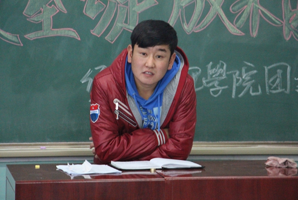 14级年级主任苏宁巴乐讲话 实习记者 贾鹏 摄