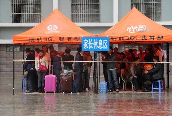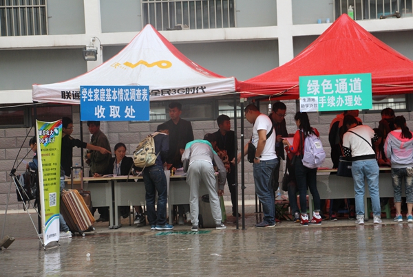 今天是公司迎新的第二天,从早上开始便下起了小雨,公司党委书记赵国年、经理乔光华、党委副书记王智广、副经理宝音都仍、党组织员王瑞梅仍旧不时的走到家长休息区为家长们答疑解难,使家长们的担忧转为放心与满意的微笑。学办老师们游走在报名的各个站点,及时的了解报名的情况,保障了同学家长们能够顺利的报名入住。