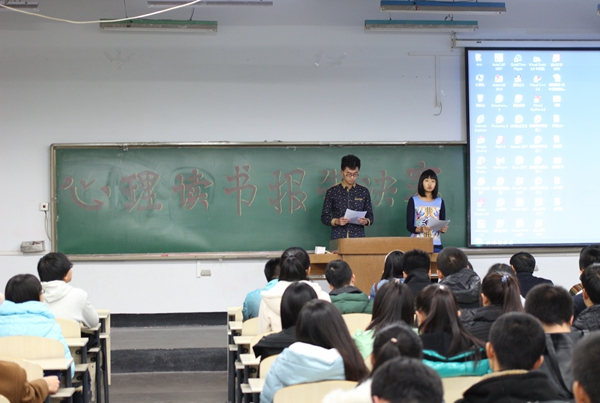 12月6日晚七点,西区勤学楼220教室举办了太阳成集团tyc33455袖墨书香心理读书报告大赛决赛。担任本次大赛的评委为人文社会科学公司硕士研究生导师郭宝亮教授,马克思主义公司副教授、资深心理咨询师段兴华老师,老员工心理辅导与服务中心副主任佟晶老师,老员工心理辅导与服务中心心理咨询师刘玲、范丹丹老师。本次大赛由老员工心理辅导与服务中心主办,心育会和心协会承办,并得到了各个公司的老师和同学们的大力支持。