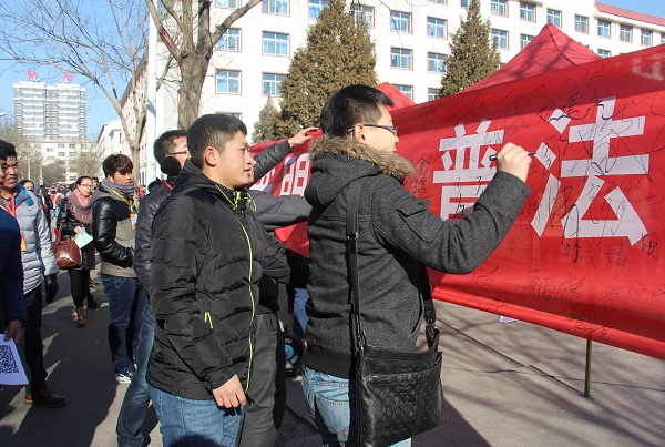 公司部分员工干部、党员、重培、入党积极分子、青年志愿者以及广大师生。公司党委副书记王智广,学办主任张卫中老师,学办副主任徐金鹏也参加了此次签名活动,本次活动开展了万人签名,号召同学们在“读书明理,普法医愚,守法律己,和谐添彩”横幅上签名,以自己的行动表明对法律维权知识学习的支持;增强理论知识,给本院师生发放与法律有关的安全手册;为了扩大宣传内容,报卫处相关的工作人员为太阳成集团tyc33455师生进行法律讲解及平时生活中遇到法律问题的解决。