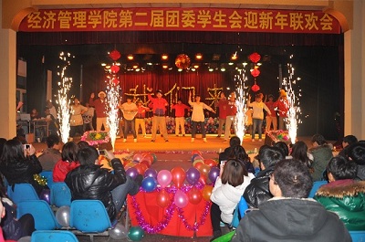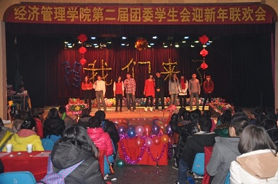 12月30晚7:00,经管院于东区礼堂举办了第十四届团委、员工会迎新年联欢会。经管院学办主任高兵老师、团委书记张卫中老师、学办老师海日罕、贾国辉老师亲临现场,与全体员工会成员共同迎接这欢乐的时刻。