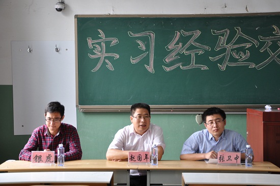 会上,在不同单位实习的四位同学分别为大家讲述了自己的实习经验与未来的职业生涯规划。其中,一位同学强调在工作中人际关系的协调尤为重要,社会中的人际关系不再像校园里这样单纯,处理好自己与同事、与上级的关系是计入社会必修的一课。其他同学则与大家分享了自己在实习中的感悟与经验,并就实习中遇到的困难与大家进行了探讨。接下来,赵老师为大家进行了讲话。赵老师指出实习对于毕业生而言是一个可以综合提升自己的关键时期,希望同学们可以从分把握好这个机会,在实习中体会实践的重要,积累经验,为以后的工作垫下坚实的基础。会议的最后,张老师为大家做了总结性讲话并就同学们在就业实习、档案交接等方便面的疑问给予了解答。在讲话中,张老师引用温总理的那句“我们不仅要做一个仰望星空的人,更要做一个脚踏实地的人”来告诫即将踏入工作岗位的同学们不要好高骛远,要调整好自己的就业观,认真定位自己,有清晰的目标、有奋斗的意识,这样才能适应社会,成就自己精彩的人生。