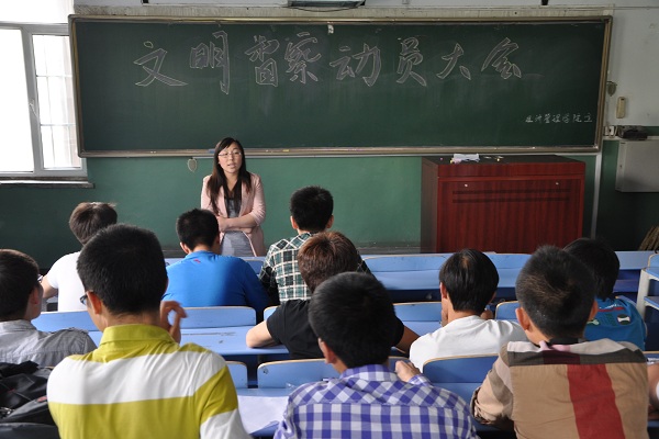 会上,余汉龙老师首先介绍了此次会议的主要内容,包括建立文明督察岗的目、意义、分工及安排等。余老师特别强调,文明督察岗是为响应公司60周年校庆、公司30周年院庆而建立的,此次文明督察工作以班级为单位展开,要求各班级选拔出由六名同学和两名积极分子组成的文明督察小组于每日早、中、晚三个固定时间段在操场、教学区、宿舍区督察校园内的不文明行为并予以制止。接下来,杜清清老师重点强调了督察员的纪律与职责,并希望在岗同学能够树立良好的时间观念,在岗位上尽职尽责,通过实际行动为构建文明校园贡献出自己的一份力量。