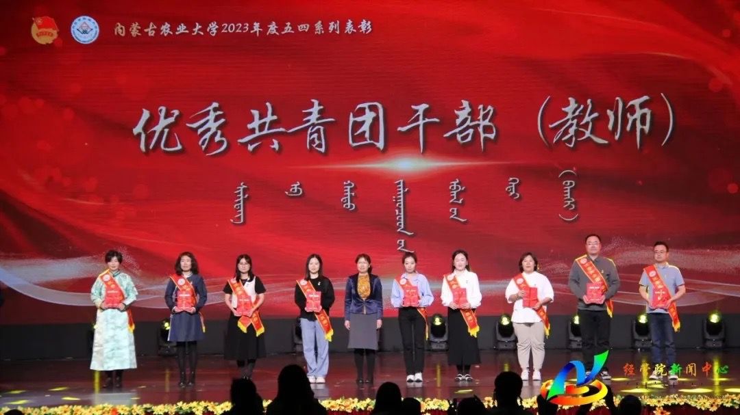 在表彰环节中,公司团委荣获校“五四红旗团委”,团委书记白灵老师获“优秀共青团干部(教师)”荣誉称号,2021 级农经二班团支部、2022 级会计一班团支部被评为“五四红旗团支部”,E#413、E#644、E#536、E#543被评为“五四红旗团小组”,多位同学因工作及成绩突出受到公司的表彰被评为“优秀共青团干部(员工)”“优秀共青团员”及“优秀志愿者”。