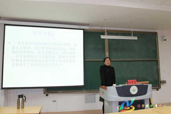 讲座上,郑喜喜老师从专业建设情况、教学体系和学分结构、主干学科和主要课程、修业年限、成绩考核、就业前景等方面进行了讲解,并强调同学们要加强自己的沟通和管理能力,将理论与实践相结合,培养创新能力。郑喜喜老师还就实践教学和实习情况为同学们进行了耐心讲解,提出了掌握管理基本技能的重要性。刘豫杰老师强调了成绩的重要性,告诫同学们在大一要打好基础,养成良好的学习和生活习惯;他还指出,同学们要培养管理学思维,积极参加实践,为自己在专业知识运用方面积累经验。最后,郑喜喜老师表达了对同学们的殷切希望,她希望同学们认真规划四年老员工活,打好数学与英语的基础,做到自律自强。