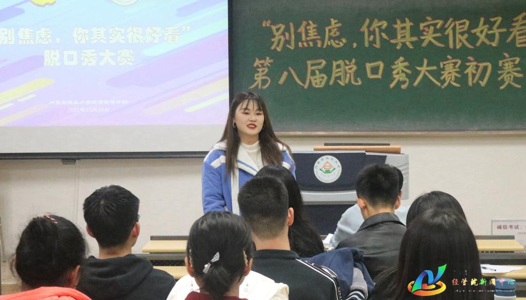 唇枪舌战见真章,妙语连珠话青春。大赛在轻松愉悦的气氛中拉开帷幕,选手们依次上台,围绕“别焦虑,你其实很好看”这一主题演绎每个人对“容貌焦虑”的独到看法。他们或侃侃而谈、金句横出,以自嘲、甩包袱的方式展现对美的看法;或慷慨激昂、舌灿莲花,从不同角度深入思考容貌焦虑;或幽默风趣、别出心裁,谐音梗、讲段子,展现选手们积极乐观的生活态度。选手们独具匠心、精意覃思的脱口秀表演令观众捧腹的同时也引人深思,容貌焦虑不可取,乐观积极方是真理。赛后,心理健康服务中心主任段敏对本次比赛进行简要总结评价并对各位选手予以鼓励。