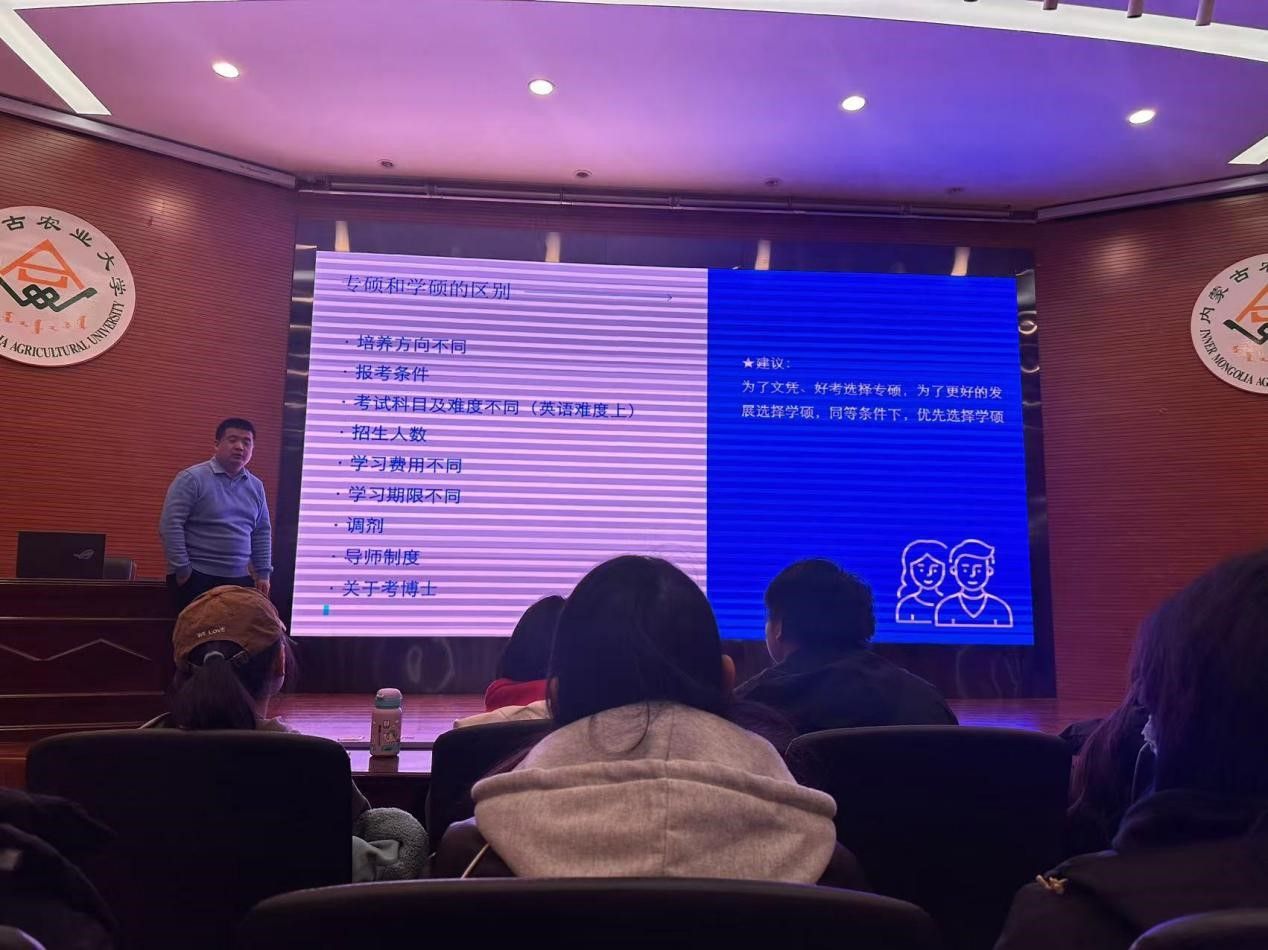 接着,王董事长对专硕与学硕的区别进行了深入解析。他讲解了两者在培养目标、课程设置、学习年限、就业方向等方面的不同,帮助同学们根据自己的兴趣和职业规划做出更合适的选择。在报考专业分析环节,王董事长结合当前就业形势和行业发展趋势,为同学们提供了专业的报考建议。他强调,选择专业时要综合考虑个人兴趣、专业背景和未来发展方向,避免盲目跟风。