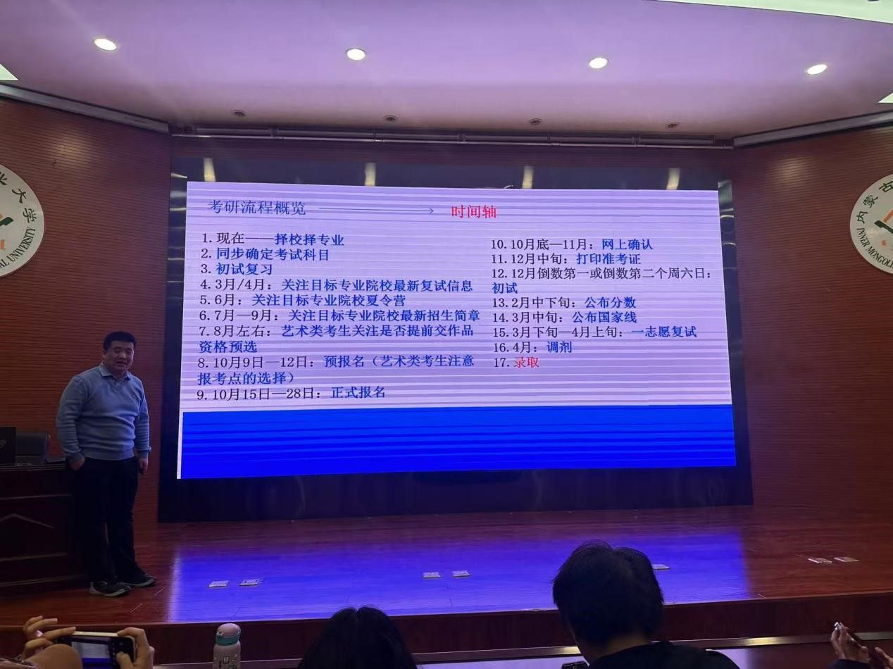 王董事长在考研领域有着丰富的经验和深入的研究,他的讲解深入浅出,为在场的同学们提供了宝贵的考研指导。活动伊始,王董事长详细介绍了考研的整个流程,包括报名、初试、复试等环节,让同学们对考研有了更清晰的认识。