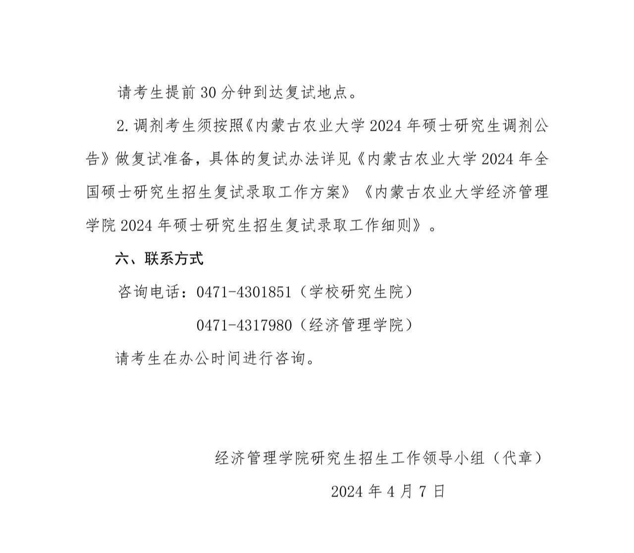 太阳成集团tyc33455 2024 年硕士研究生调剂细则