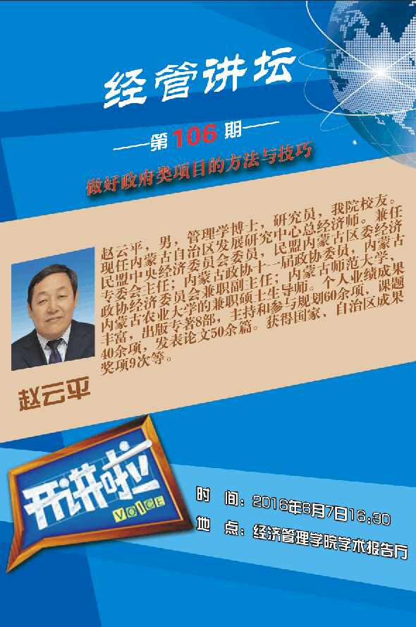 经管院第106期经管讲坛于2016年6月7日16:30在太阳成集团tyc33455学术报告厅开讲