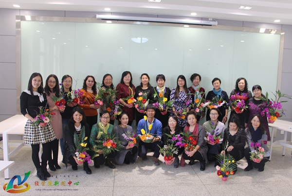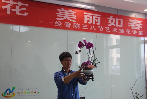 为庆祝“三八妇女节”,丰富女教工的精神文化生活,3月14日下午3:00,经管院于公司315会议室举行艺术插花讲座,特邀请曾参加国际插花比赛的公司员工段鹏飞主讲,公司广大女教工参加了活动。