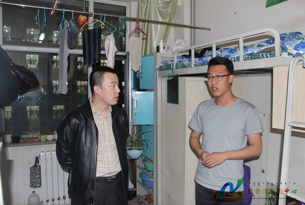 王智广书记和徐金鹏老师每到一间宿舍,都会就同学们的家庭基本情况、宿舍生活、学习情况等几方面的问题进行亲切的交谈。走访过程中,同学们将宿舍生活中出现的问题及时向老师们反映,王书记和徐老师对同学们提出的问题耐心地进行解答。此外,老师们还特别强调同学们要注意寝室卫生,注意安全,谨防上当受骗,保护好自己的人身财产安全。