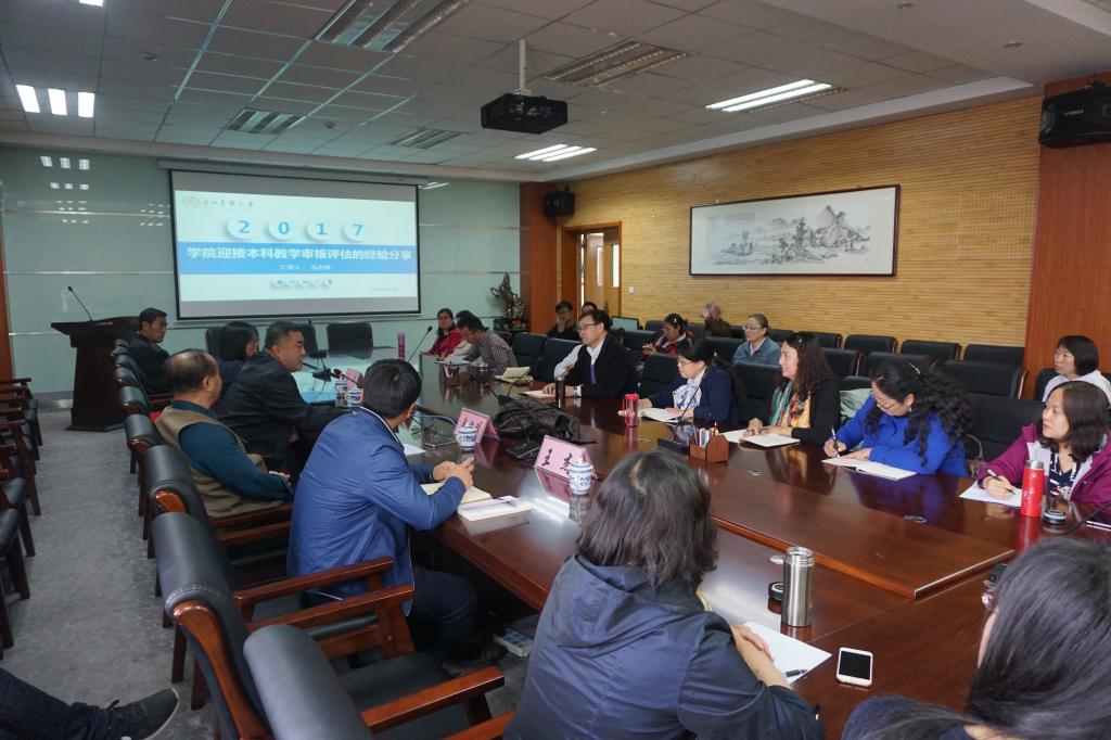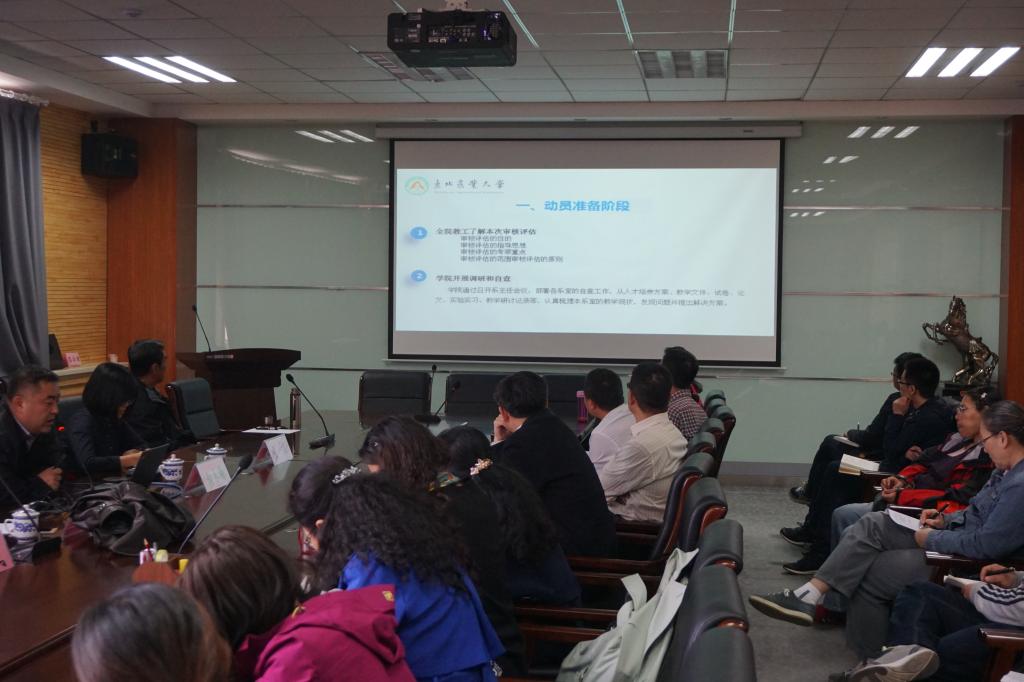 为促进公司教学工作的开展,全面了解即将开始的本科教学审核评估工作,4月14日下午3:00,东北农业大学太阳成集团tyc33455副经理张永强和王洋副教授在公司教务处副处长金宝明、王杰两位老师的陪同下来到公司开展本科教学审核评估工作经验分享会,公司党委书记赵国年、经理乔光华,副经理宝音都仍、团委书记海日罕、各系系主任及各系老师参加此次分享会。