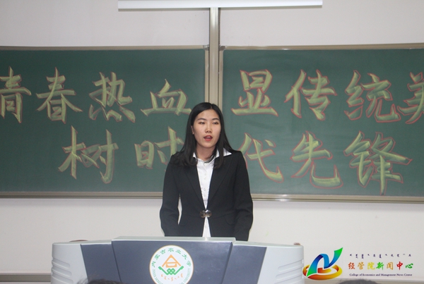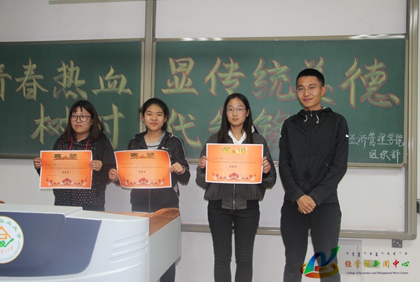 为深入贯彻“一学一做”精神,纪念无私奉献的李莹学姐,经管院于4月17日晚7:00在南教202教室开展“那首难以忘怀的青春赞歌——洒青春热血 显传统美德 树时代先锋”主题演讲比赛。公司同学积极参加比赛,公司团委员工会与新闻中心各部室部长担任评委。