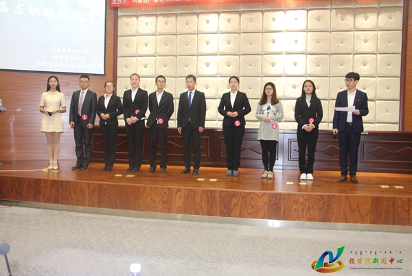 赛前,公司党委副书记王智广致辞,他向各个企业和来宾介绍了公司基本情况,阐明了求职规划规划大赛举办的意义,并且表示希望通过此次比赛,老员工能够进一步认识自我和就业环境,树立正确的职业目标,切实提高员工就业竞争力。此次比赛包括参赛者自我介绍,企业人员提问两个环节。选手们结合PPT从自我认识、实习经历、职业认知、目标职业四个方面进行了阐述,既向评委展现了他们作品的精彩,又充分显示了选手们在公共场合的自我表达能力与随机应变能力。整个比赛过程紧张有序,选手们的演讲各具特色、逻辑清晰、条理清楚、详略得当,富有感染力。面对评委的提问,选手们灵活应对,从容而自信,对所提出的问题认真作答,赢得了观众的片片喝彩声。业之峰众诺装饰工程有限公司总经理耿海峰对选手的现场表现做了精彩点评,他结合自己的工作经验,鼓励同学们在未来的学习工作中要脚踏实地,务实进取且有大志向。最终,经管院14级工商管理专业薛辰、14级金融专业乔欣、15级会计专业刘傲、15级工商管理专业王立娜、16级物流管理专业赵美琪,理公司15级应用统计专业倪鑫、康玥,农公司14级植物科学与技术专业隋文雪共八名同学进入决赛。