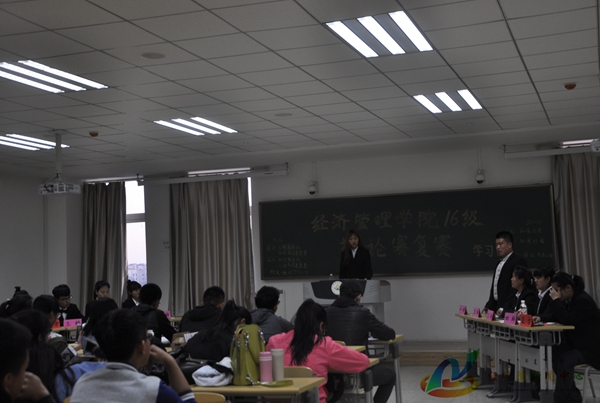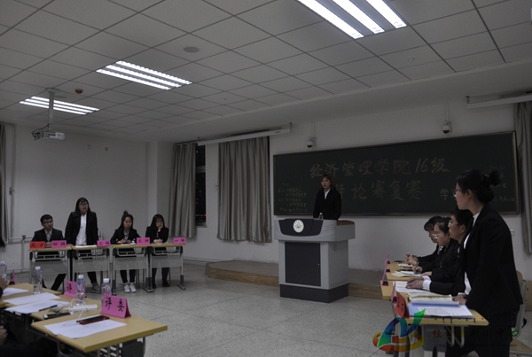 为丰富同学们的课余生活,提高同学们的学习积极性,经管院于4月21日晚7:00在南教325、326教室举办16级辩论赛复赛,公司团委员工会及新闻中心各部室部长担任评委。