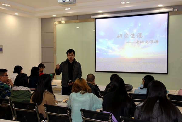 班会上,同学们积极踊跃、争先恐后的向学姐们提出了自己的疑问,从如何学习高数,如何看待考研与就业,如何备考英语四级,保研的要求等各方面进行请教。各位学姐来自不同的专业与学业类型,她们不仅有针对性的从各自专业出发解答了同学们的问题,还把自身考研过程中总结的经验毫无保留的分享给了同学。张靖然学姐还向同学们介绍了考研面试前需要做的准备及相关技巧,使同学们对这一方面的知识有了进一步的了解。徐老师也以自己的切身经历向同学们讲述了考研的宝贵经验,他认为,考研的成功等于正确的方法加之不懈的努力以及恰当的复习材料。最后,李战江老师向各位研究生表示了感谢,并希望同学们及时总结,利用好这次班会所收获的经验。