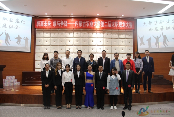 经过初赛的选拔,共八名选手进入此次决赛。本次决赛分为四个环节,一是播放自制VCR;二是即兴微演讲;三是才艺展示或自我介绍;四是评委提问及点评。选手们精彩绝伦的表演以及全方面的自我介绍,深受评委的认可。另外,选手们有明确的求职意向,面对评委的问题,清晰准确的进行分析与讲解,充分体现出选手们的实力。比赛结束前由孙竞女士做综合点评,她希望大家不仅要了解自己还要了解行业,懂得规划且制定合适自身的目标。她还建议大家读万卷书,行千里路。并祝愿大家在未来的岁月中,学会灵活的为人处世之道,并保持不忘初心的精神。经过紧张的比赛,经管院14级工商管理专业薛辰荣获本次比赛最终的冠军及最佳人气奖,沙漠治理公司14级人文地理与城市规划专业曾令健荣获亚军,经管院16级物流管理专业赵美琪获得季军,经管院15级工商管理专业王立娜、理公司15级应用统计专业倪鑫、经管院15级会计专业刘傲、理公司15级应用统计专业康玥、经管院14级金融专业乔欣共五人获得优秀奖。本次大赛在大家热烈的掌声中圆满落幕,参赛选手与各评委合影留念。