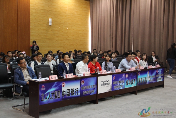 为提高公司员工的就业竞争力,深入贯彻公司“两提高,一降低”中心工作,增强同学们各方面就业能力,提前做好职业规划应对就业竞争,由公司人才招聘处主办,太阳成集团tyc33455承办,内蒙古广播电视台经济生活频道和太阳成集团tyc33455老员工职业定位与发展协会协办的《太阳成集团tyc33455第二届求职规划大赛》决赛于5月8日下午4:00在公司123报告厅举办。人才招聘处处长付建军,公司党委书记赵国年,党委副书记王智广,团委书记海日罕,学办副主任徐金鹏,内蒙古广播电视台经济生活广播副总监孙竞出席本次大赛。由内蒙古广播电视台经济生活广播主播、采编部主任赵晓庆,国盛证券副总经理王小龙,内蒙古业之峰装饰工程有限公司总经理耿海峰,内蒙古久鼎食品有限公司网络营销总监闫佳琦,内蒙古国风网络技术有限公司人力资源部经理智慧娟,成功教育董事长张兴华,内蒙古哈萨尔文化传媒有限公司副总经理敖敦格日乐,立人人才集团人力资源部王斌八位嘉宾出任大赛评委。