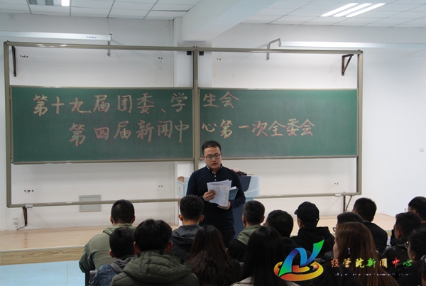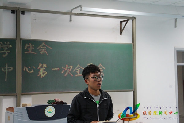 会议伊始,公司员工工作办公室副主任徐金鹏对各位员工干部表示祝贺。他提出作为一名员工干部不仅要增强与人沟通的能力,还应积极主动的去学习工作上的技能,完成好本职工作。徐老师还强调员工干部要严格遵守规章制度,并配合公司师生完成各项任务。随后,公司团委副书记、员工会主席刘佳航向大家一一介绍了主席团的成员,由团委副主席、员工会秘书长郑思华及新闻中心副主任韩璐为员工干部宣读第十九届团委员工会及第四届新闻中心章程。接着,员工会主席刘佳航强调了有关值班缺勤、员工干部的学习、礼貌等问题,并希望在今后的工作中各部室团结协作,发扬出经管学子的独特风采。新闻中心主任刘志超用员工组织的口号“我爱这个组织,我希望她好”激起了大家对员工会的热爱,并强调了纪律、值班等问题。最后,各部室部长依次进行工作汇报,分别对各自部门近期的具体工作进行了总结。