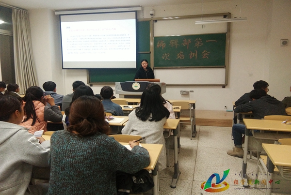 培训会上,孙明鑫以PPT的形式主要针对稿件的写作要素、各类活动写作特点以及写稿时的注意事项等方面对部员进行了系统化的培训。她还将部员写的通讯与改过后的进行对比,认真仔细的指明需要改进的地方。接着,各部长要求部员上台发言,谈谈如何把握写稿内容,并及时指出部员出现的各类问题。