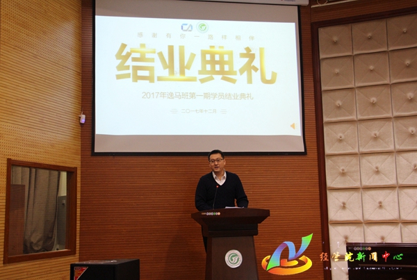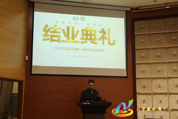 12月18日晚7:00,经管院于公司123报告厅举办2017年逸马班第一期学员结业典礼,公司党委书记赵国年,逸马集团董事长助理唐远燕,逸马集团连锁公司事业部总经理沈魁元,逸马集团内蒙古创新孵化中心总经理张环宇出席本次活动。活动由公司党委副书记王智广担任主持,逸马班班主任张旭光带领全体逸马班学员参加了活动。