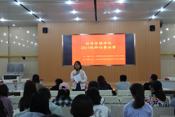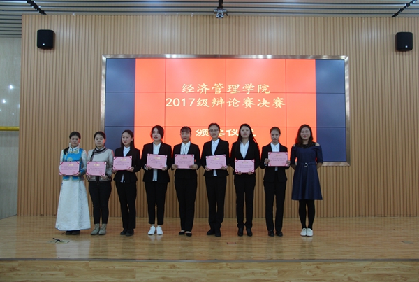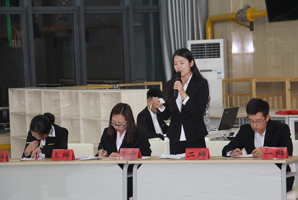 为拓宽同学们的知识面,锻炼同学们的思维方式,增强团队合作能力,4月20日晚7:00,经管院于大食堂三楼举办17级辩论赛决赛。公司员工工作办公室老师王婷婷、刘雪佳、麻红冉、南俊、张亚欣及团委员工会主席团担任评委,共8个班级参加比赛。