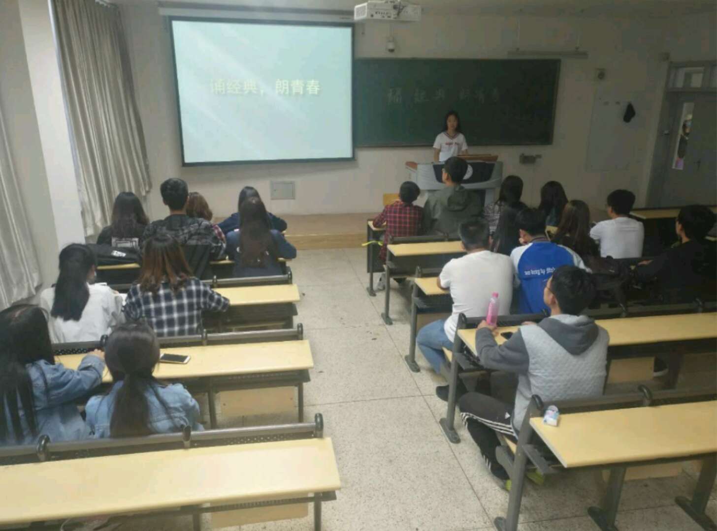 为迎接五四青年节,经管院17级各班团支部于近期分批次在南教开展以“‘诵经典,朗青春’爱国诗词诵读”为主题的团日活动,17级各班全体同学积极参加。